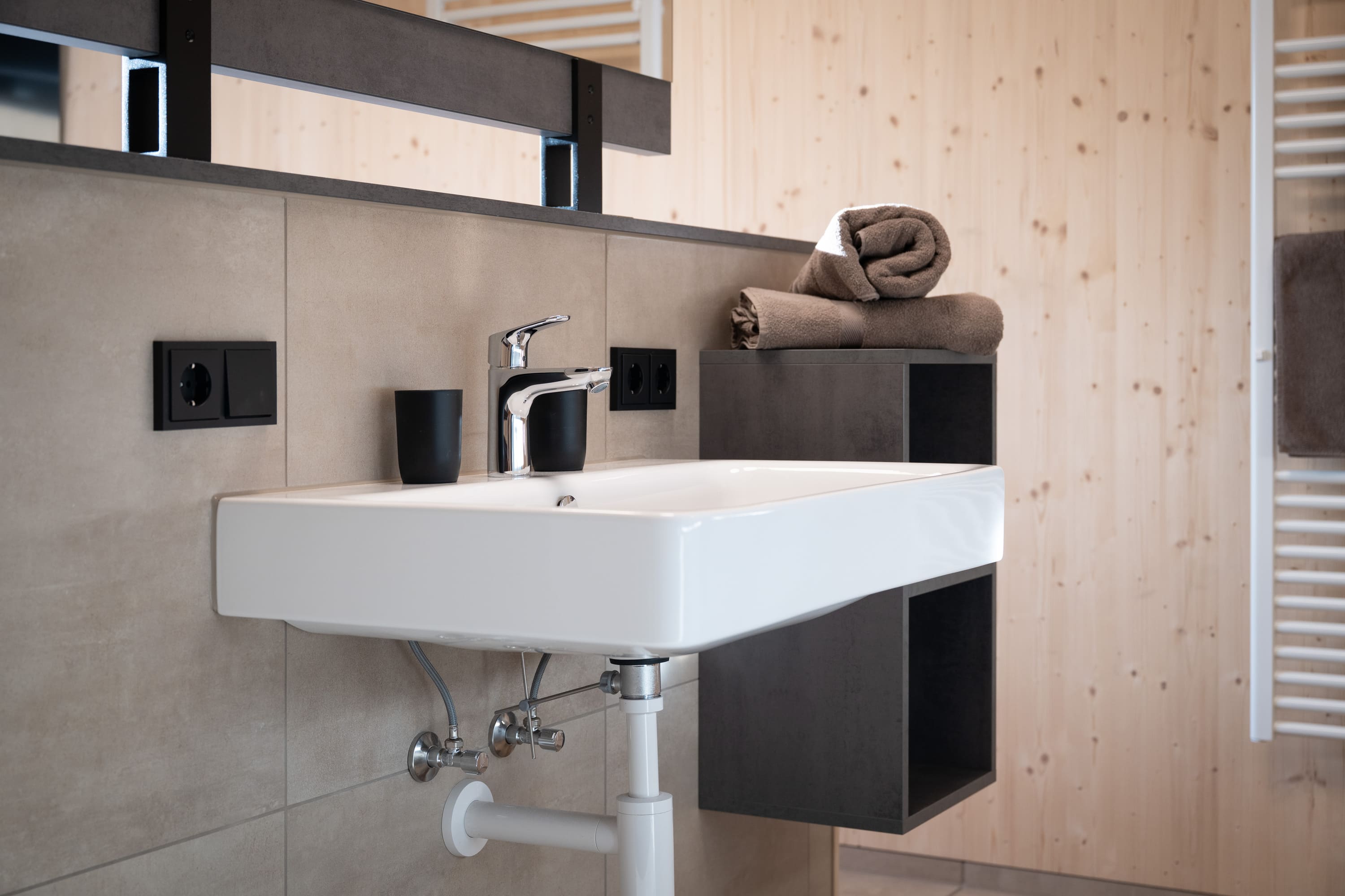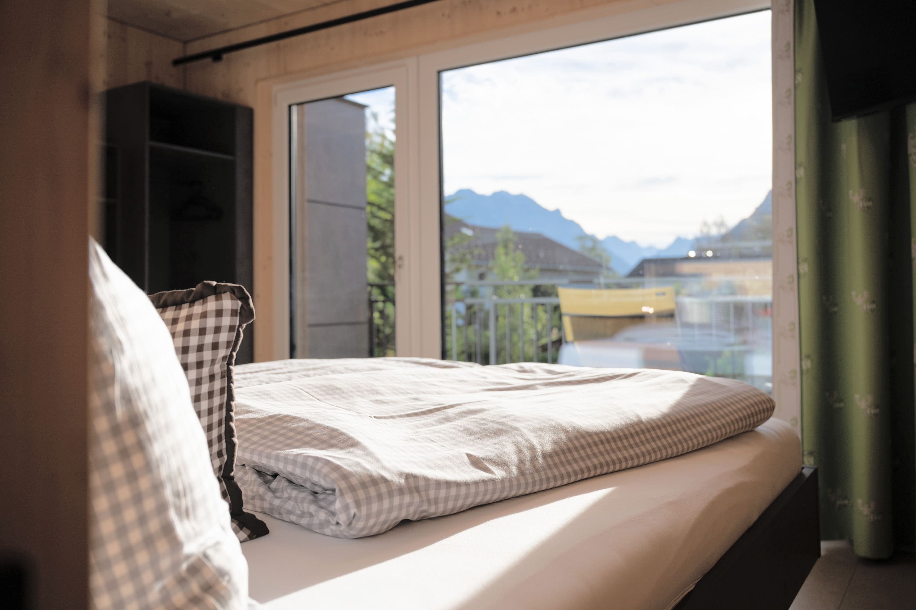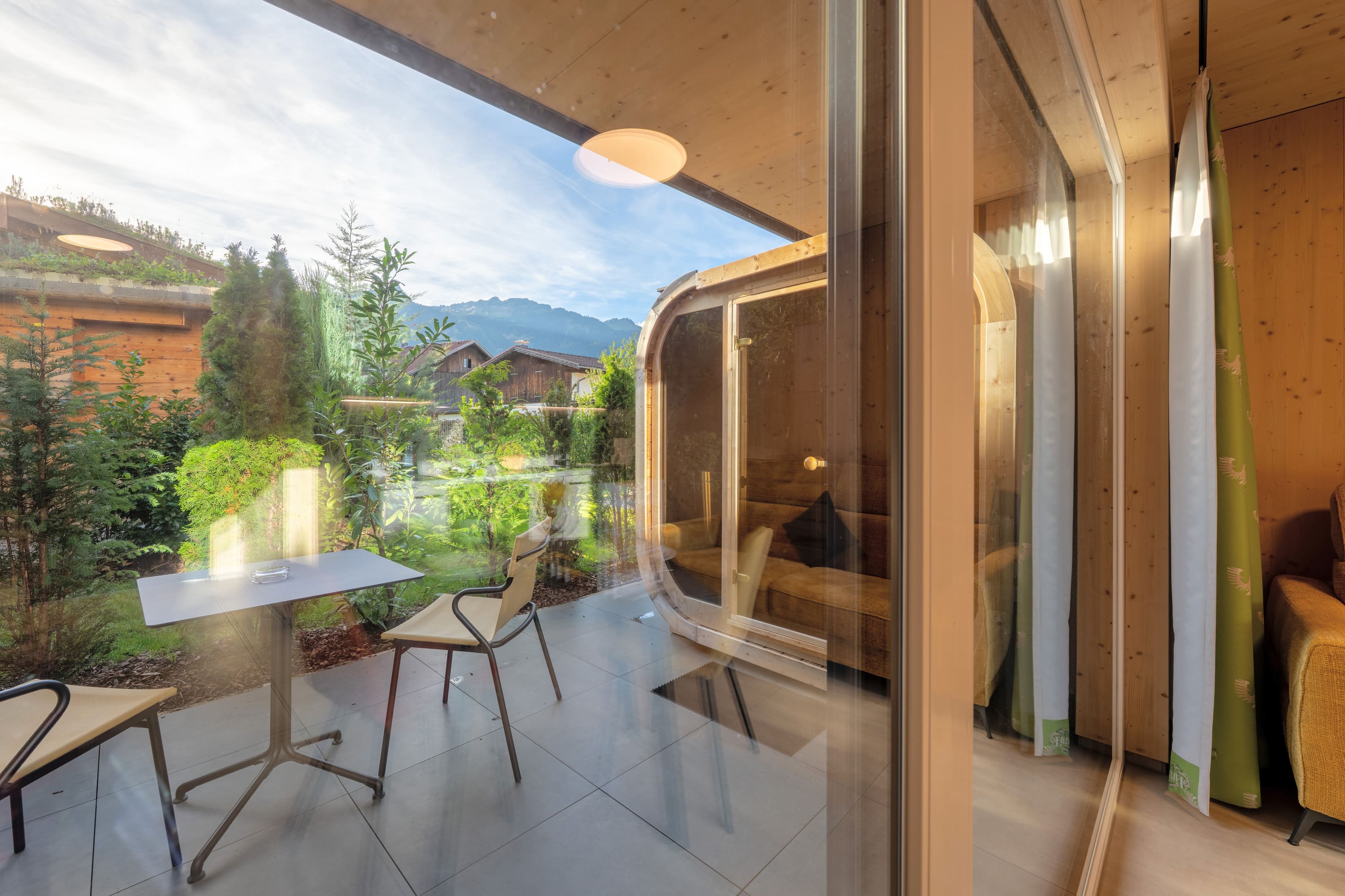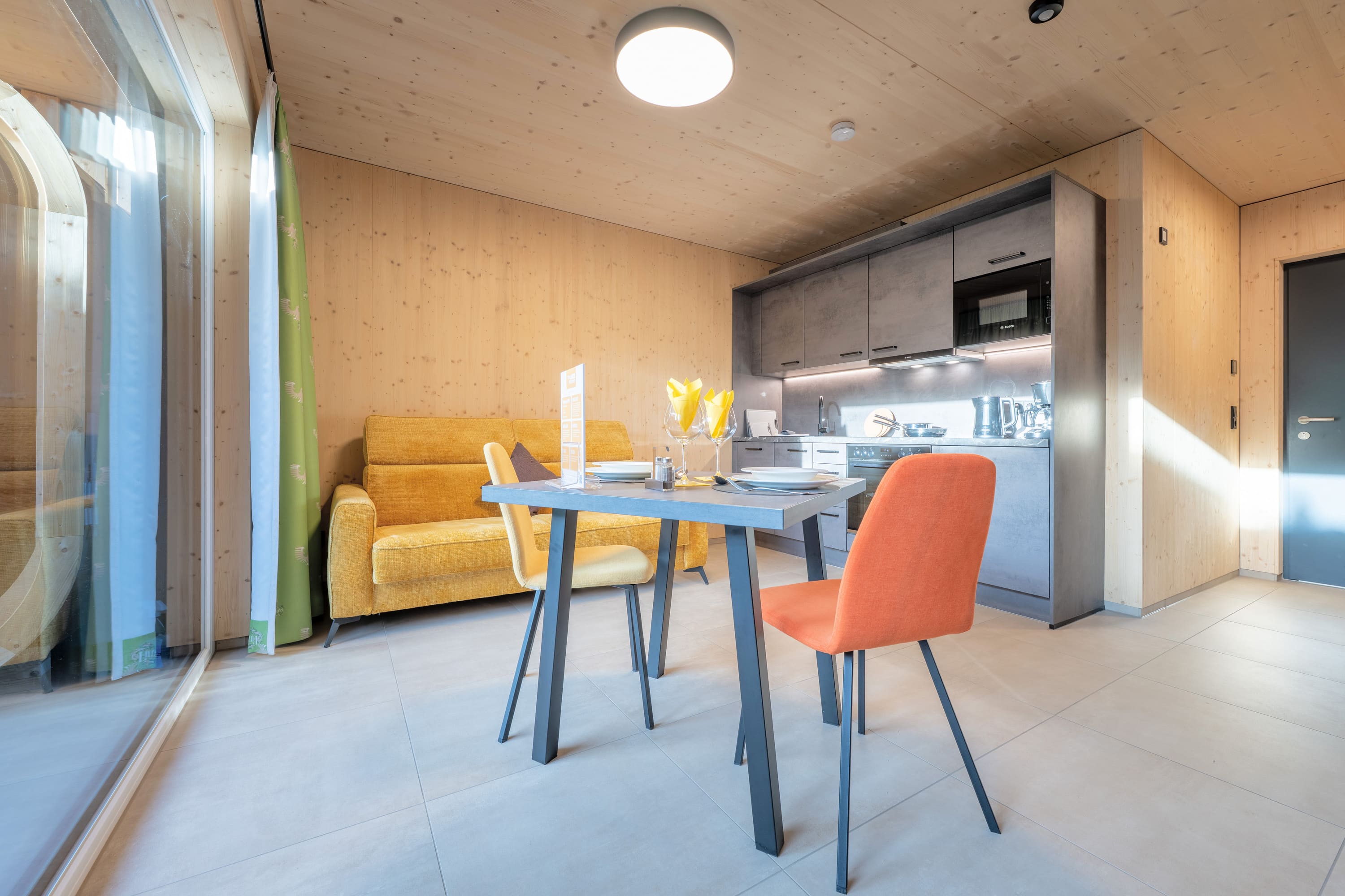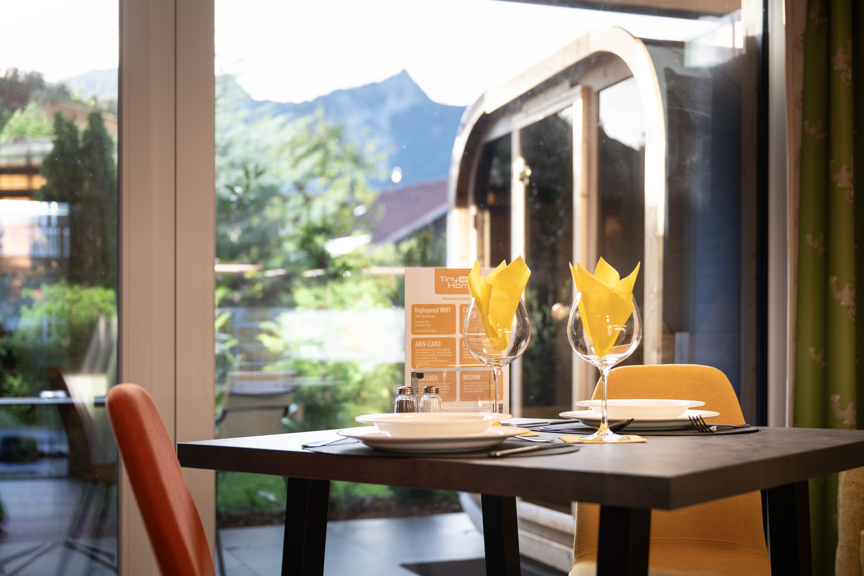 Unser Premium TinyHome ist ca. 60 m2 groß, inkl. privater Sauna und bietet Platz für 1 bis 2 Personen. Eine handgefertigte Innentreppe aus Buche-Massivholz, verbindet das Erd- mit dem Obergeschoss. Der großzügige Balkon und die Terrasse ermöglichen Ihnen einen einzigbartigen Ausblick auf die Berge.
